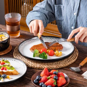 18-Piece White and Black Ceramic Mediterranean Dinnerware Set
